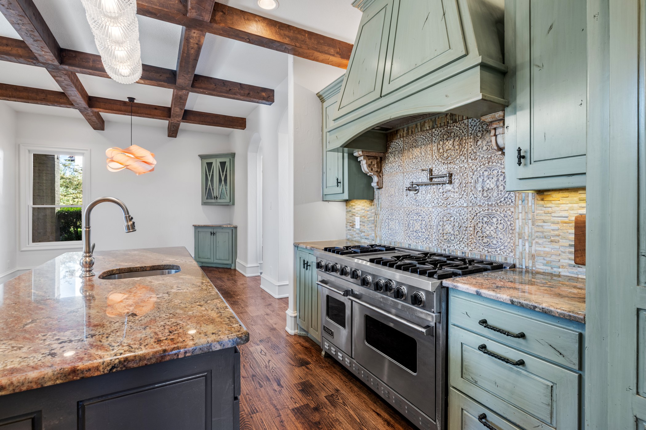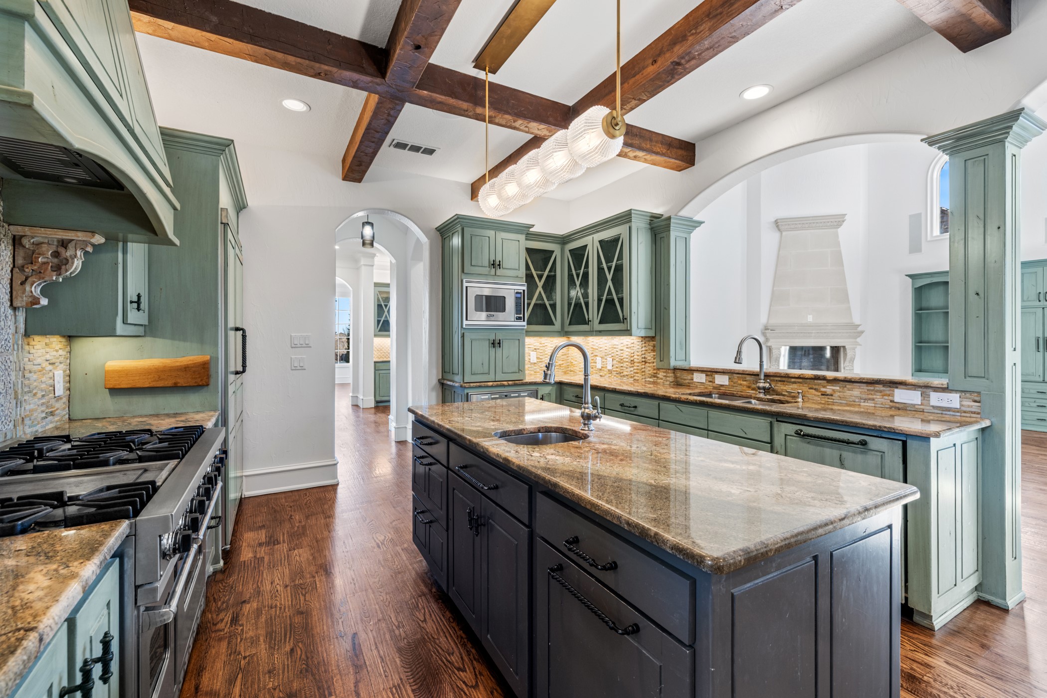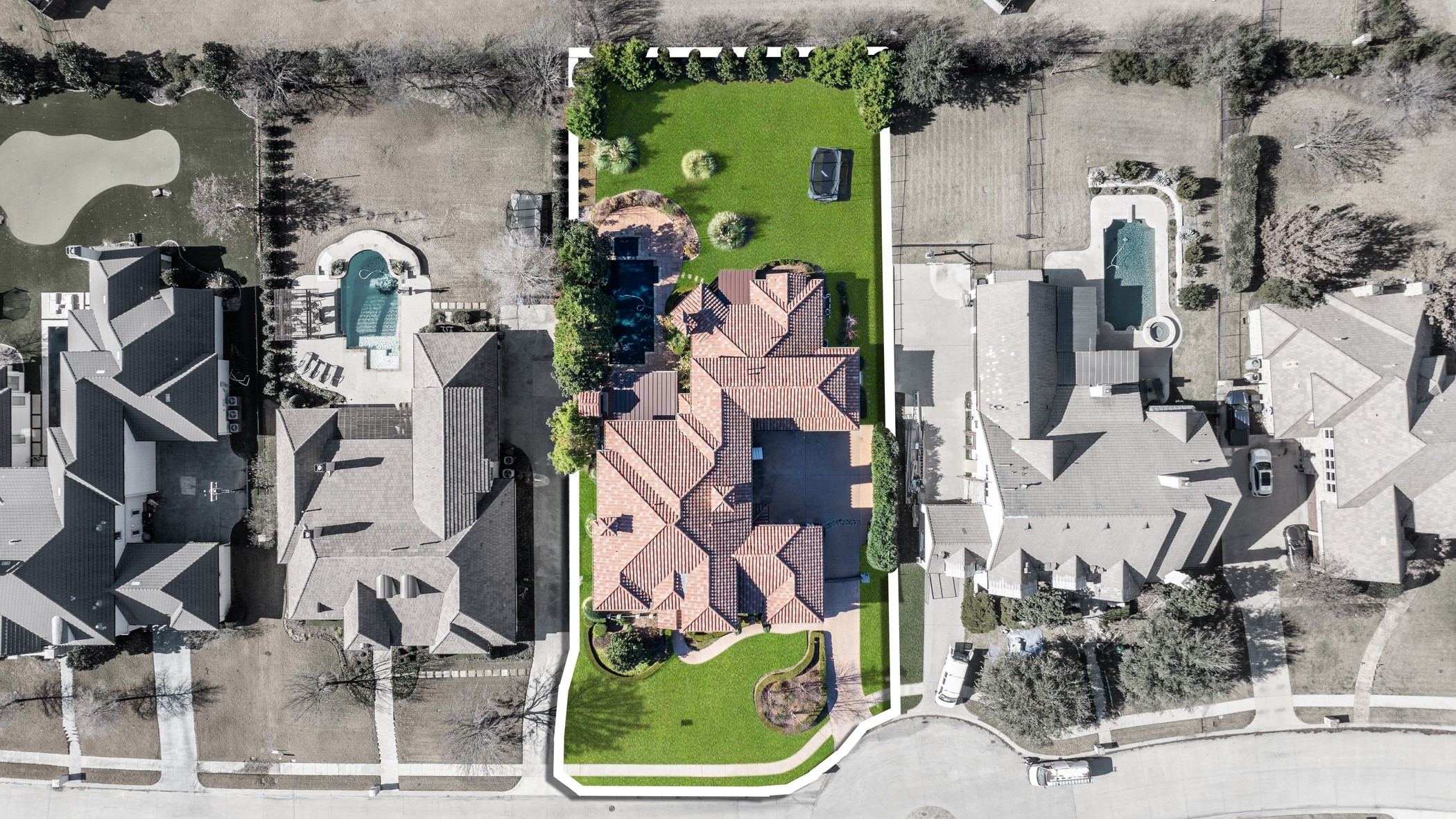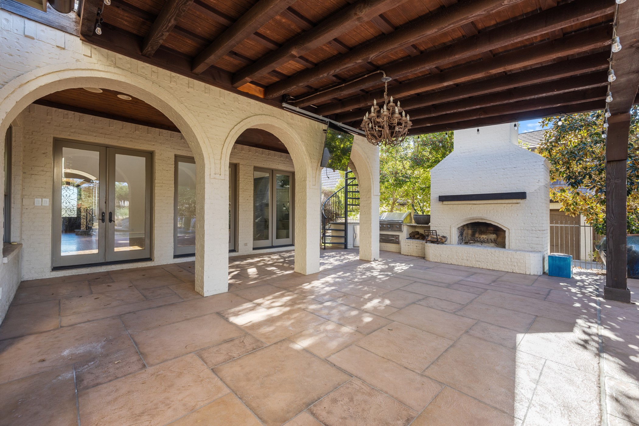Outdoor living is nothing short of spectacular. The resort-style backyard features a heated, saltwater pool with dramatic water features, a covered patio, outdoor kitchen, and gas fireplace--perfect for year-round entertaining. Expansive green space and a basketball court complete this exceptional outdoor retreat.