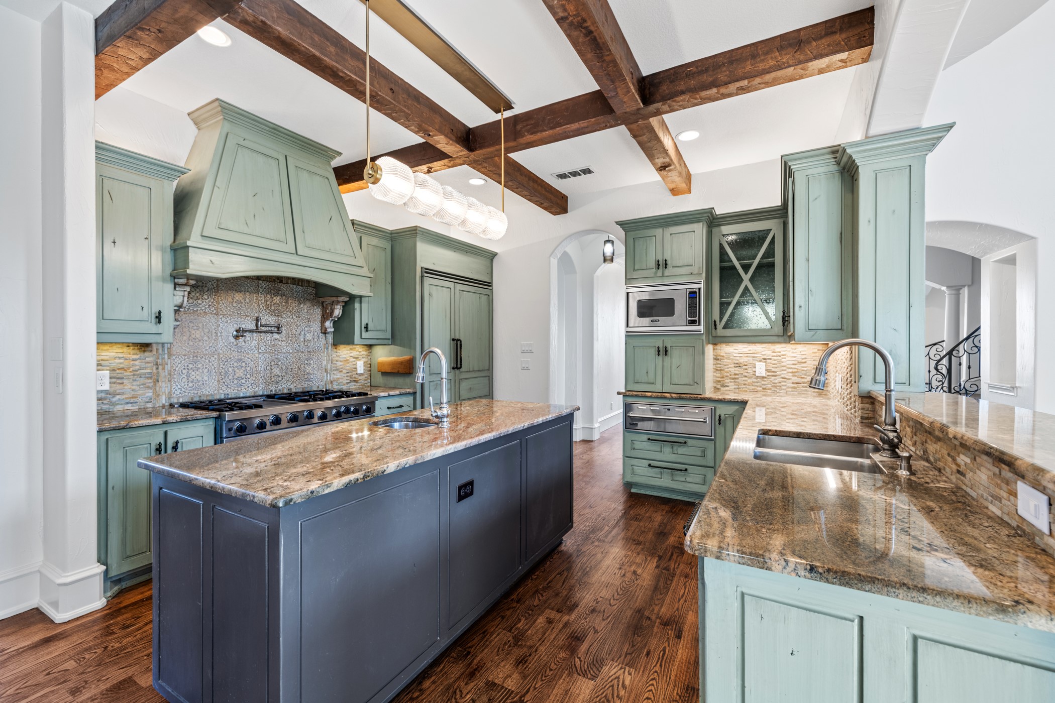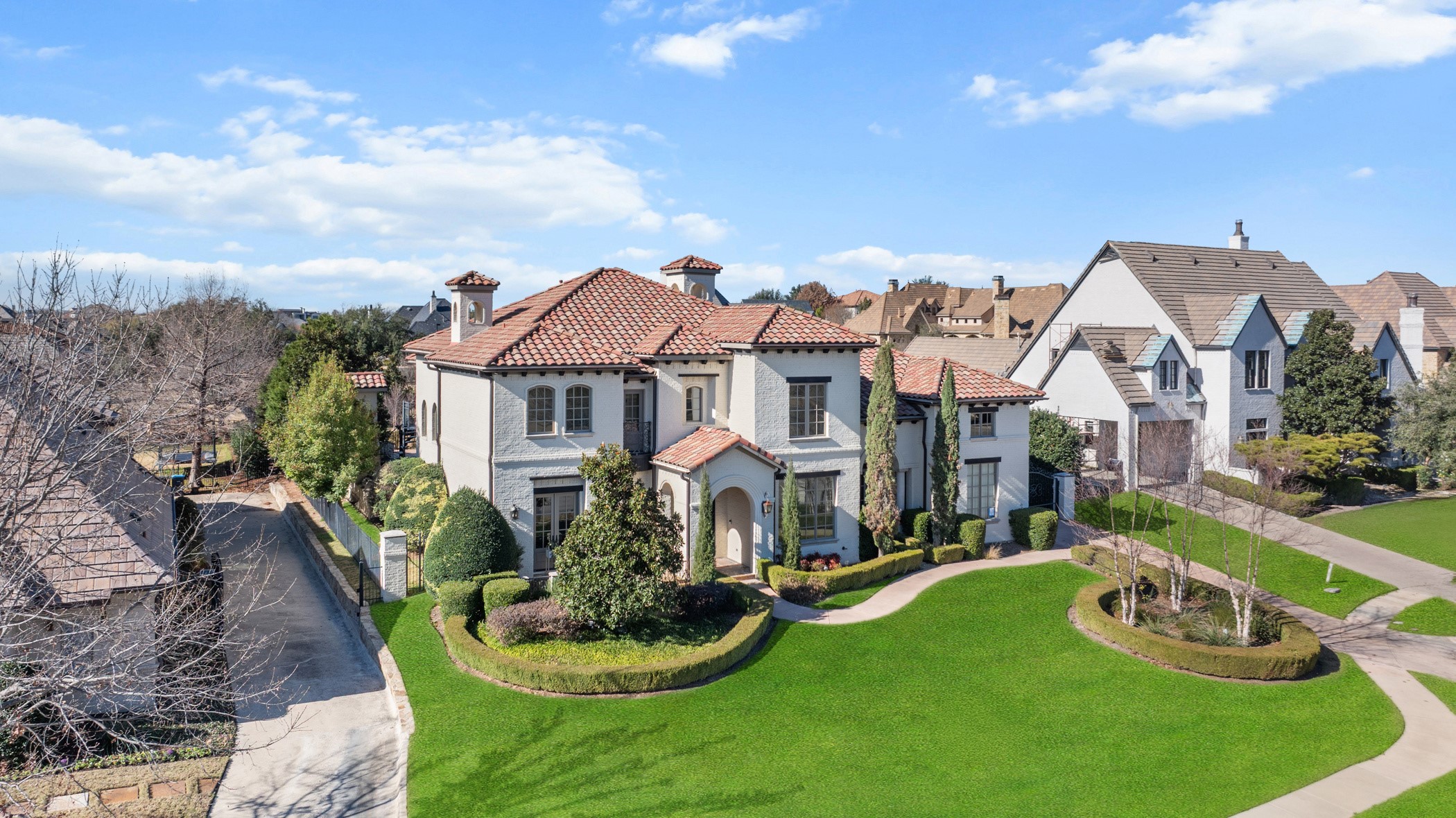 The interior is appointed with high-end finishes and purpose-driven spaces, including a private office, game room, fitness room, wine room, and a hidden secret room. Recent upgrades include new HVAC systems, new water heaters, a recently replaced tile roof, and freshly painted interior and exterior, ensuring both comfort and peace of mind. The home is also equipped with a tornado shelter and whole-home generator. Culinary enthusiasts will appreciate the top-of-the-line commercial-grade appliances, including Sub-Zero, while three gas fireplaces add warmth and ambiance throughout the home. A luxurious steam shower enhances the primary suite experience.