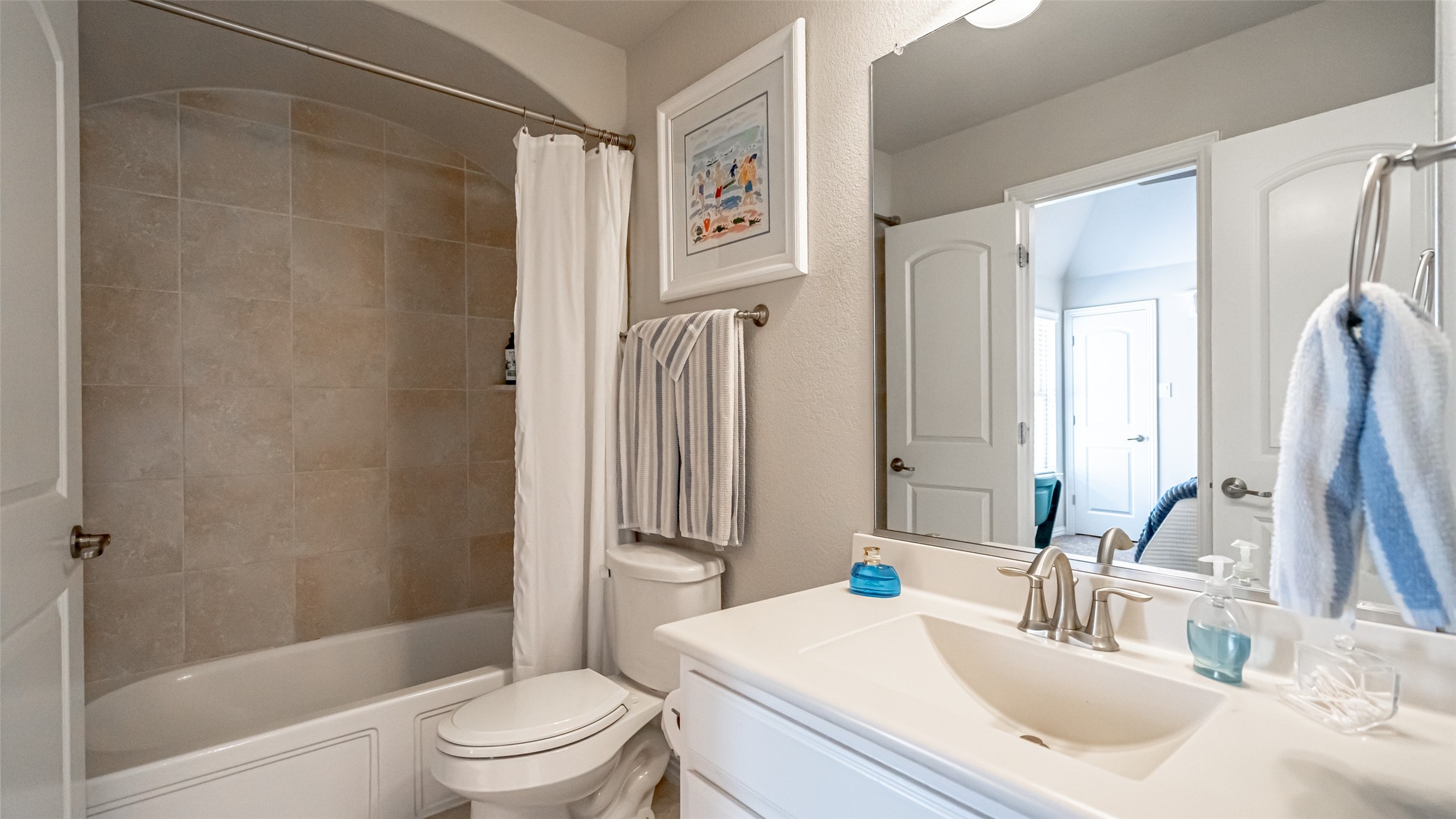 A versatile upstairs loft offers space for a home office, playroom, or retreat. Each spacious bedroom includes generous closets and well-appointed baths. The primary suite is a true sanctuary with a sitting area, expansive walk-in closet, and spa-like bath boasting granite surfaces, a whirlpool tub, separate shower, and dual vanities.